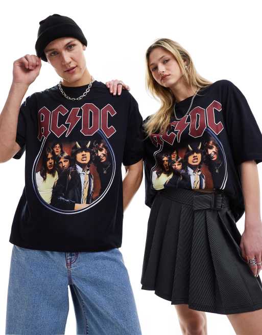 ASOS DESIGN – Unisex-Band-T-Shirt in Schwarz mit Oversize-Schnitt und „AC/DC“-Grafikprint