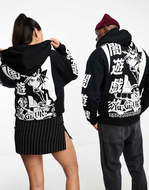 ASOS DESIGN – Unisex – Oversize-Kapuzenpullover in Schwarz und Weiß mit lizenzierten „Yu-Gi-Oh!“-Prints