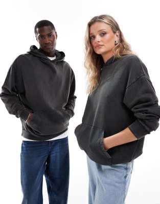 ASOS DESIGN – Unisex – Oversize-Kapuzenpullover in verwaschenem Schwarz