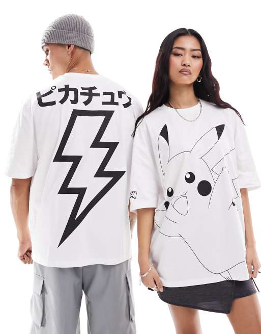 ASOS DESIGN – Unisex – Oversize-T-Shirt in Weiß mit lizenzierten Pikachu-<em>Pokémon</em>-Grafikprints