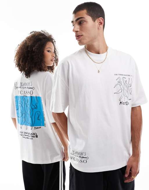 ASOS DESIGN – Unisex-T-Shirt in Weiß mit Picasso-Aufdruck und Oversize-Passform