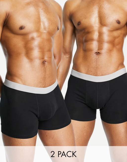 ASOS DESIGN – Unterhosen in Schwarz mit grauem Bund im 2er-Pack