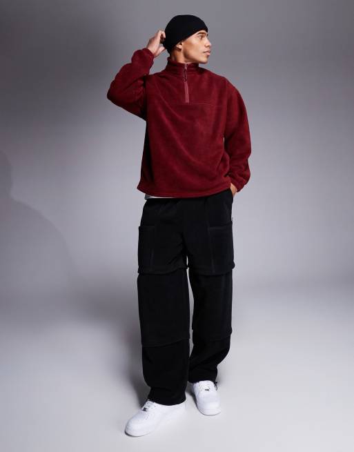 ASOS DESIGN – Utility-Jogginghose aus Fleece in Schwarz mit Oversize-Schnitt