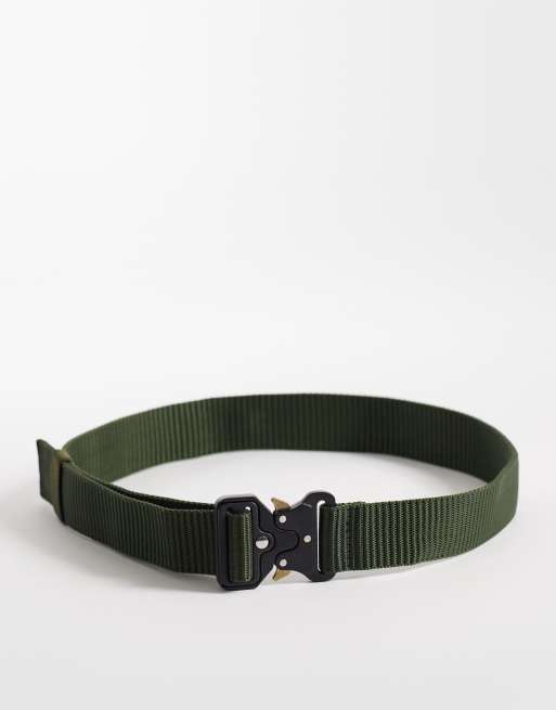 ASOS DESIGN – Utility-Webgürtel in Khaki mit Statement-Schnalle