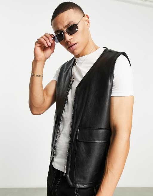 ASOS DESIGN – Utility-Weste in schwarzer Lederoptik