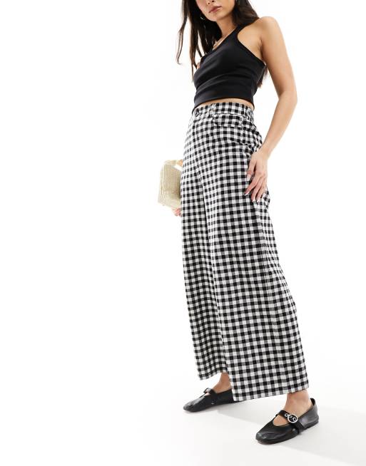 ASOS DESIGN – Verkürzte Hose in Schwarz-Weiß mit weitem Schnitt und Vichy-Karo