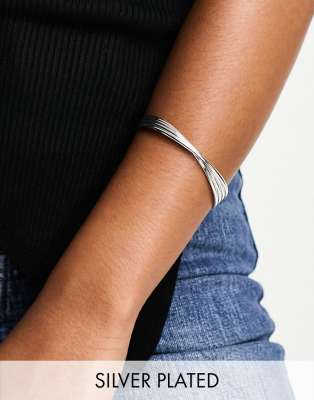 ASOS DESIGN – Versilberter Armreif mit verdrehtem Stapel-Design