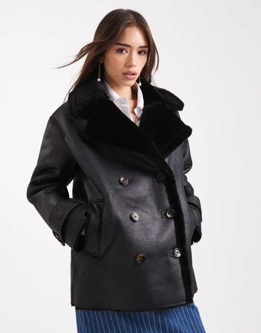 ASOS DESIGN – Verstärkte Oversize-Pilotenjacke in Schwarz mit Teddyfell