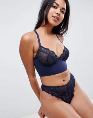 ASOS DESIGN – Verstärkter, lang geschnittener Spitzen-BH mit Bügeln und Slip