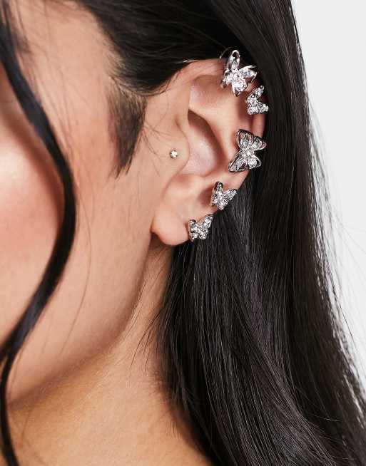 ASOS DESIGN – Verstellbare Ohrmanschette mit Schmetterlingsdetails in Silberoptik