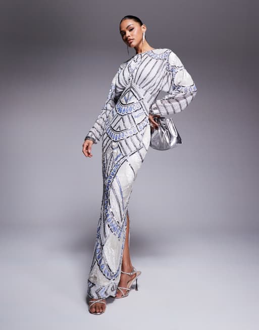 ASOS DESIGN – Verziertes Maxikleid in Blassblau mit Fledermausärmeln