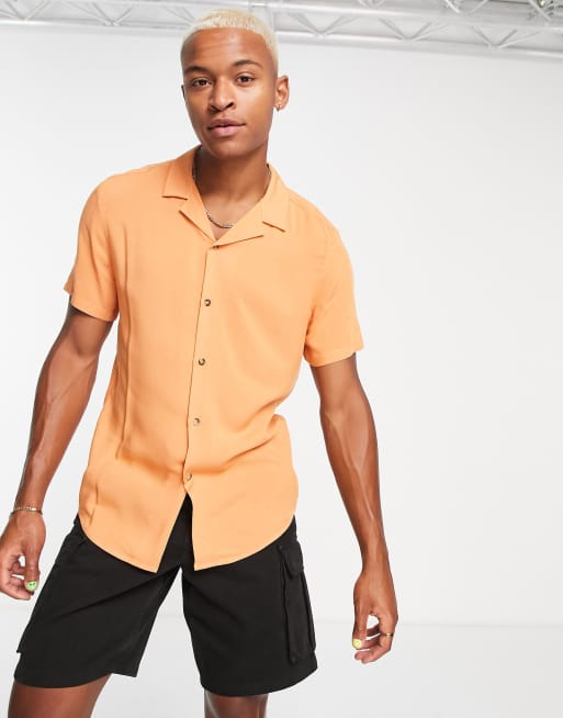 ASOS DESIGN – Viskose-Hemd in Orange mit normalem Schnitt