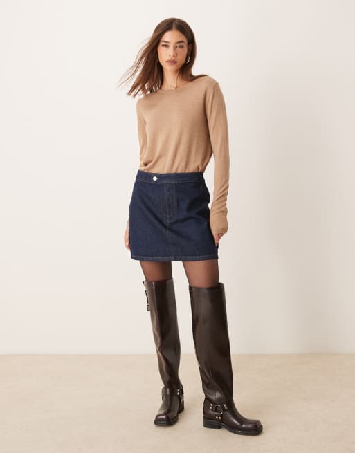 ASOS DESIGN – Volant-Jeansrock in Indigoblau mit Bundlasche
