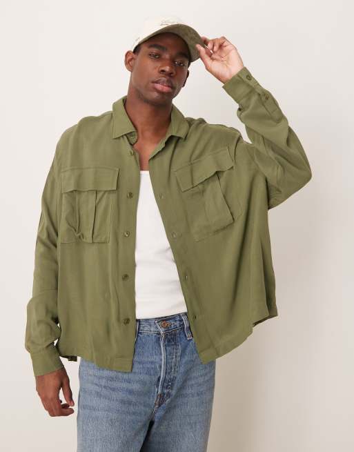 ASOS DESIGN – Voluminöses, kastiges Oversize-Hemd in Khaki mit Taschen