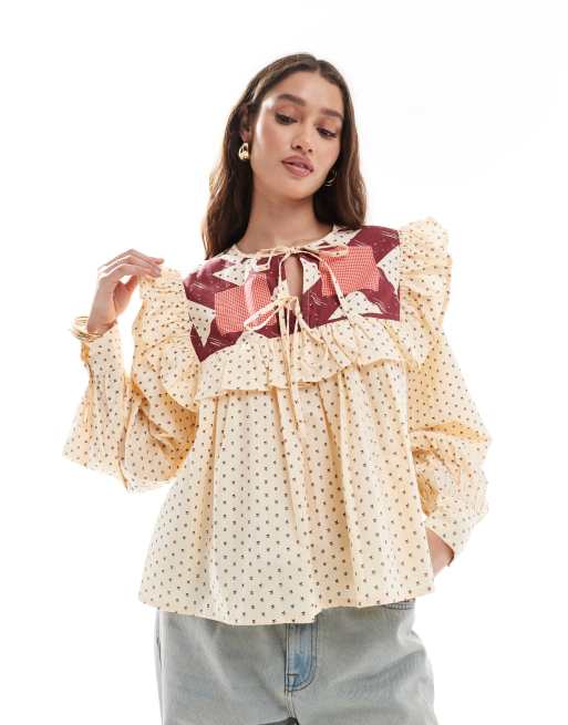 ASOS DESIGN – Vorne gebundenes, langärmliges, gestepptes Oberteil