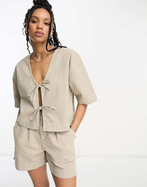 ASOS DESIGN – Vorne geschnürtes Oberteil in verwaschenem Beige, Kombiteil
