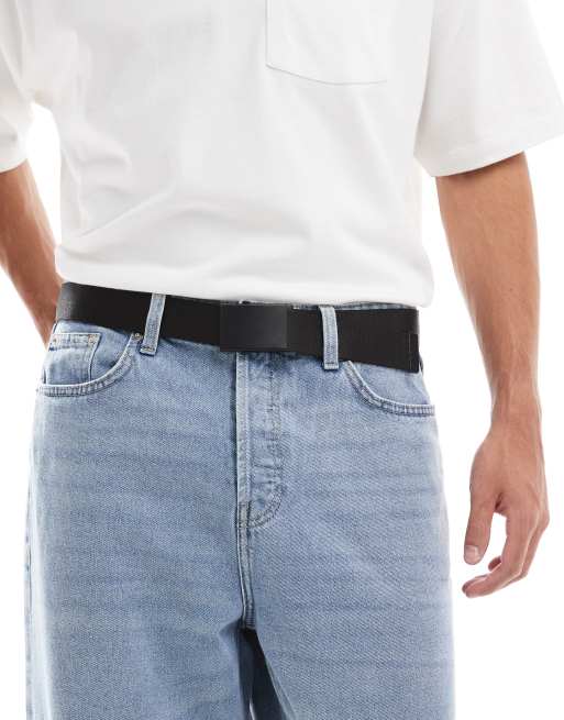 ASOS DESIGN – Webgürtel in Schwarz mit mattschwarzer Schnalle