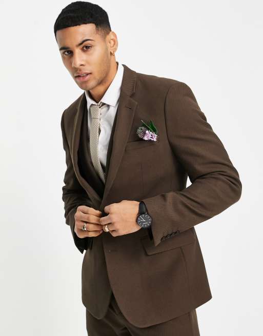 ASOS DESIGN Wedding – Eng geschnittene Anzugweste aus Twill in Braun