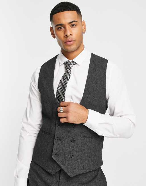 ASOS DESIGN Wedding – Eng geschnittene Weste in Schwarz mit feiner Struktur