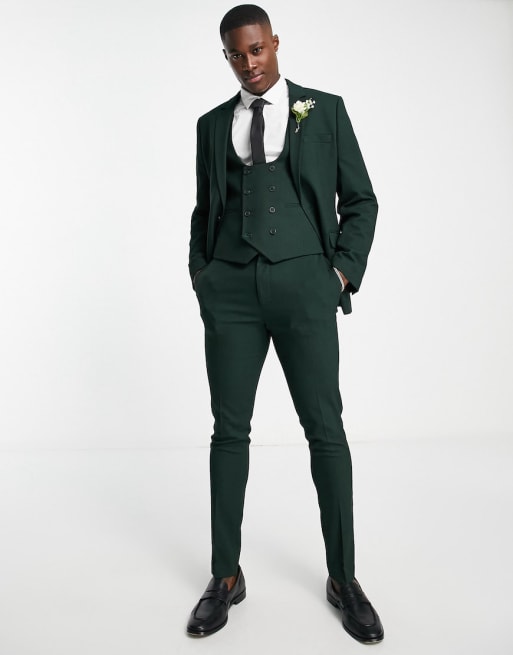 ASOS DESIGN Wedding – Eng geschnittener Anzug in Tannengrün mit Mikrostruktur