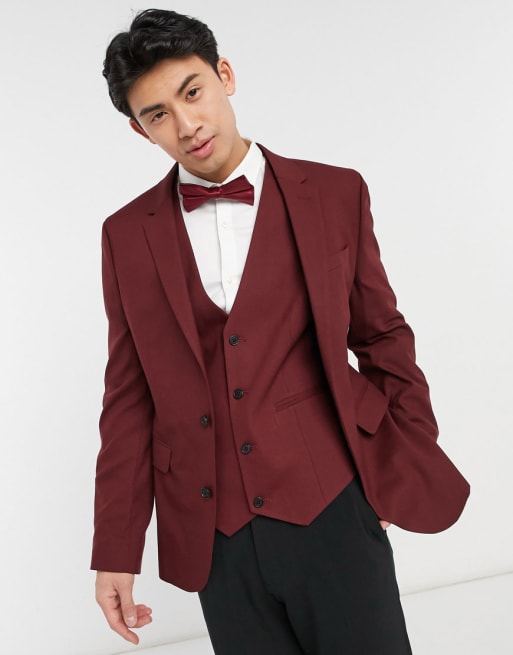 ASOS DESIGN Wedding – Enger Anzug in Burgunder