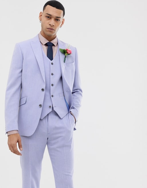 ASOS DESIGN Wedding – Enger Anzug in Flieder mit Kreuzschraffurmuster