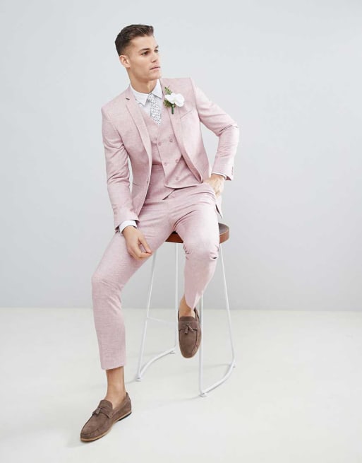 ASOS DESIGN Wedding – Enger Anzug in Rosa mit Kreuzschraffurmuster und bedrucktem Futter