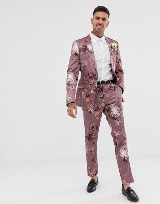 ASOS DESIGN – Wedding – Enger Anzug mit rosa Blumenmuster