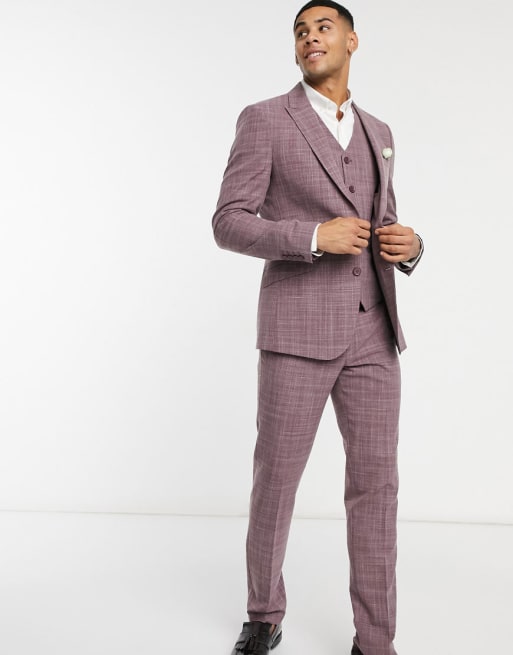 ASOS DESIGN Wedding – Enger Hochzeitsanzug in Burgunderrot mit Schraffurmuster