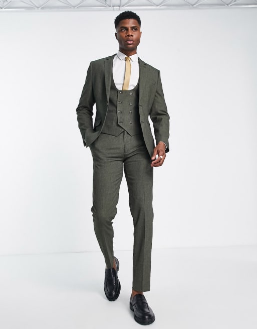 ASOS DESIGN Wedding – Hochzeitsanzug in Tannengrün mit engem Schnitt und Struktur