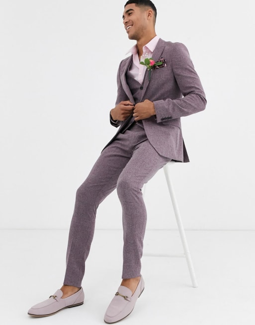 ASOS DESIGN Wedding – Sehr eng geschnittener Anzug mit Kreuzschraffur, in Weinrot meliert