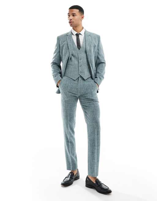 ASOS DESIGN Wedding – Slim Fit Anzughose in Grün mit Kreuzschraffur
