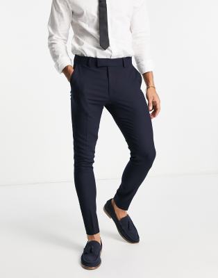 ASOS DESIGN Wedding – Super eng geschnittene Anzughose in Marineblau mit Mikro-Struktur