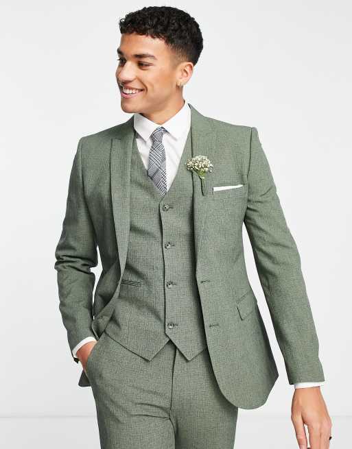 ASOS DESIGN Wedding – Super eng geschnittenes Sakko in Tannengrün mit Kreuzschraffurmuster