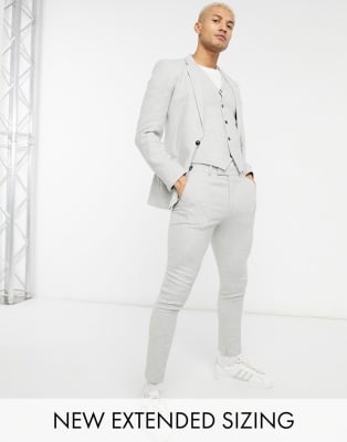 ASOS DESIGN Wedding – Superenger Anzug aus Twill-Wollmix in Eisgrau