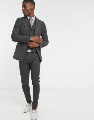 ASOS DESIGN Wedding – Superenger Anzug aus Wollmischung mit Fischgrätenmuster in Anthrazit