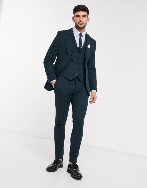 ASOS DESIGN Wedding – Superenger Anzug aus Wolltwill in Dunkelgrün
