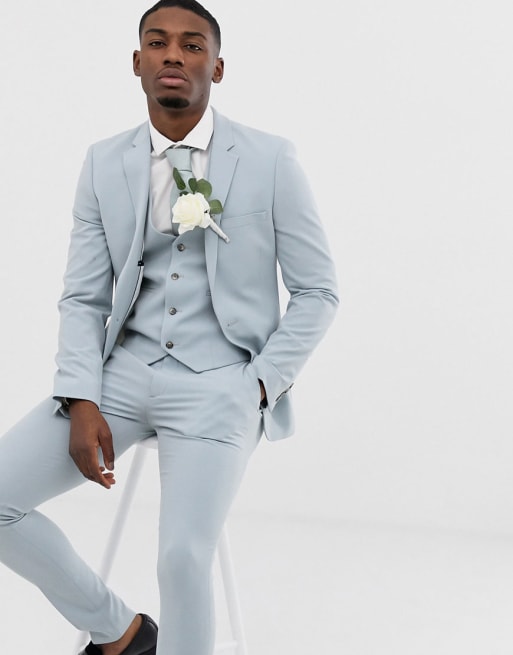 ASOS DESIGN – Wedding – Superenger Anzug in Eisblau