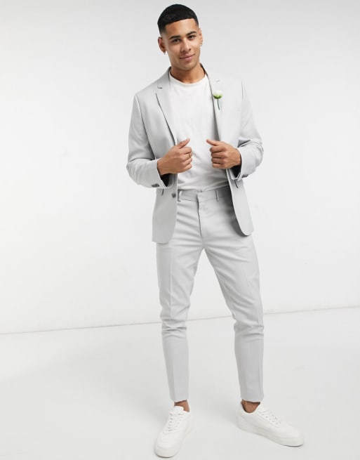 ASOS DESIGN – Wedding – Superenger Anzug in Eisgrau in Mikrostruktur