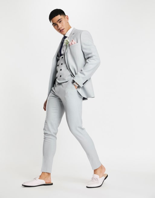 ASOS Design Wedding – Superenger Anzug in Nebelblau mit Mikrostruktur