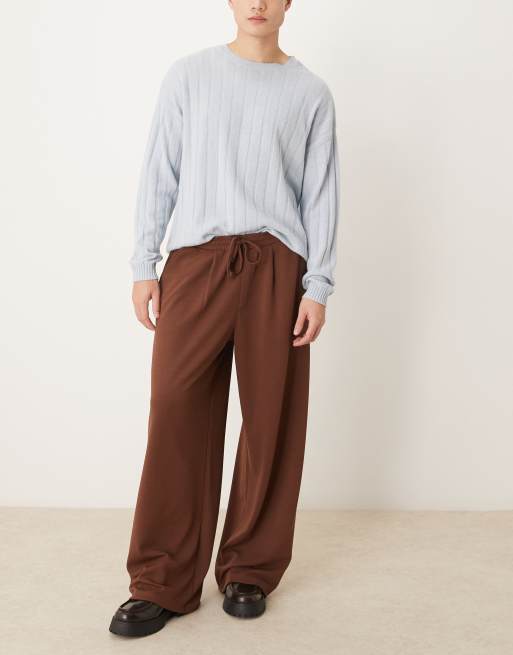 ASOS DESIGN – Weiche, elegante Hose in Braun mit Bundfalten und superweitem Schnitt