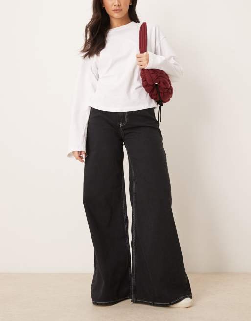 ASOS DESIGN – Weiche, weite Jeans in schwarzer Waschung mit Kontrastnaht