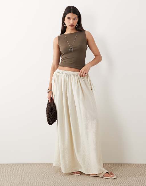 ASOS DESIGN – Weicher Maxirock in Knitteroptik mit geschnürter Taille in Auster