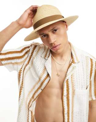 ASOS DESIGN – Weicher Strohhut mit farblich abgestimmtem Band in Biscuit