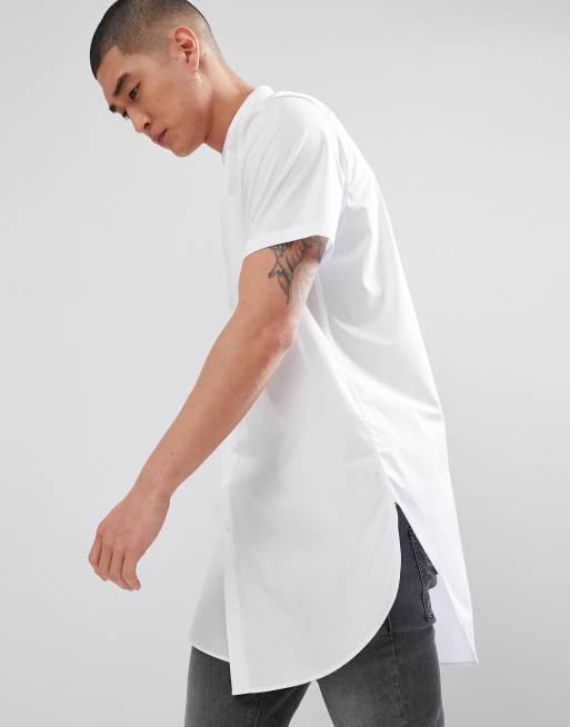 ASOS DESIGN – Weißes, superlanges Hemd in normaler Passform mit Großvaterkragen