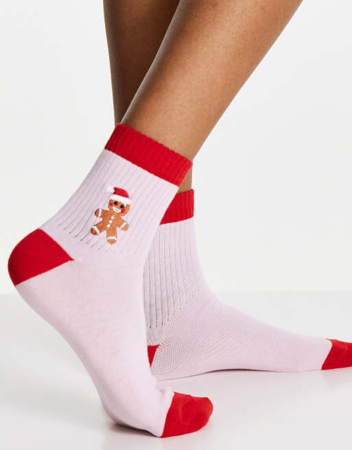 ASOS DESIGN – Weihnachtssocken mit Lebkuchen-Stickerei in Rosa