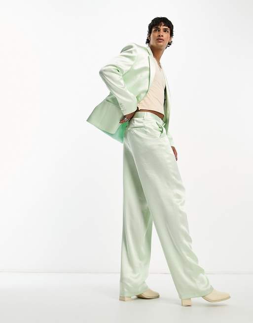 ASOS DESIGN – Weit geschnittene Anzughose aus Satin in Grün