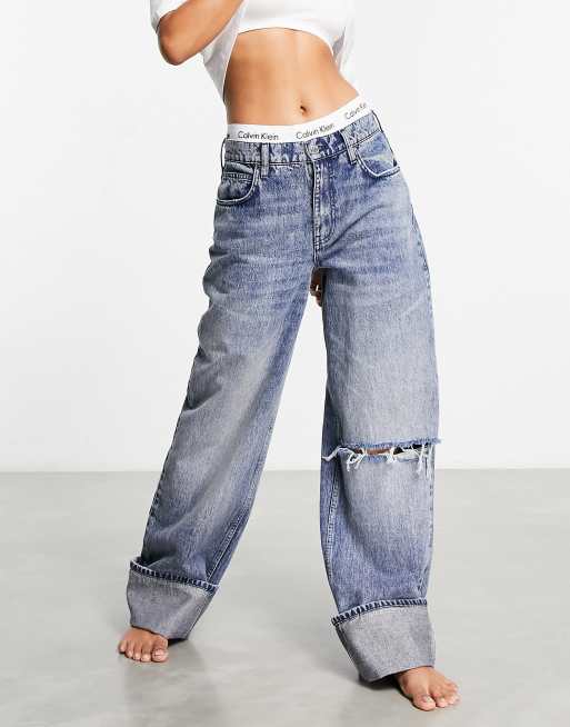 ASOS DESIGN – Weit geschnittene Boyfriend-Jeans mit Knierissen und breitem Umschlag