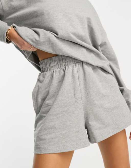 ASOS DESIGN – Weit geschnittene, sommerlich leichte Shorts aus Sweatshirt-Stoff in Grau meliert