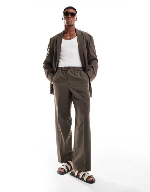 ASOS DESIGN – Weite Anzughose zum Reinschlüpfen in meliertem strukturiertem Braun